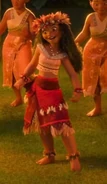 Moana's hula dress appears during the song "Where You Are." The dress is white and red. Moana performs a dance, along with some other villagers, in it. Along with the dress, she wears a red flower crown, bracelets, and anklets.
