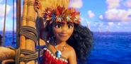 When Moana wears it, she is on a boat. She appears to be the leader of the boat since she has just taken up her role as chief.